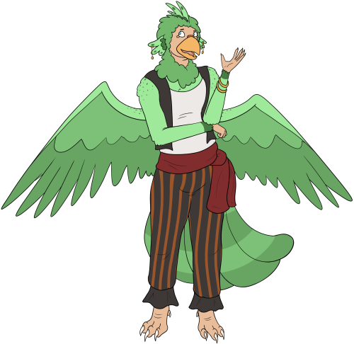 Gural are medium-height, bird-like humanoids with colourful feathers covering their bodies. They have bald faces, feet, and hands, and a pair of wings sprouting from their back. Their bald skin has a scaly texture to it; with their hands and feet being very similar to the talons of a bird, with thick-but-flexible digits.